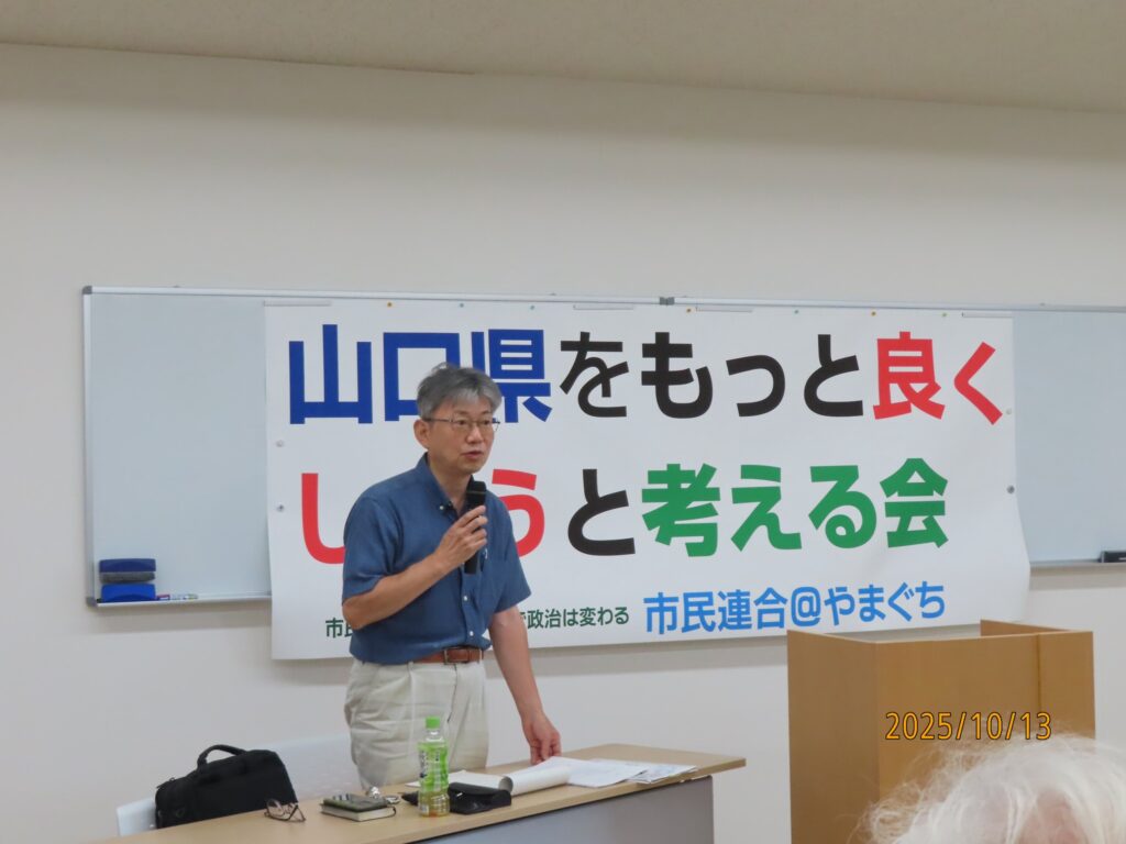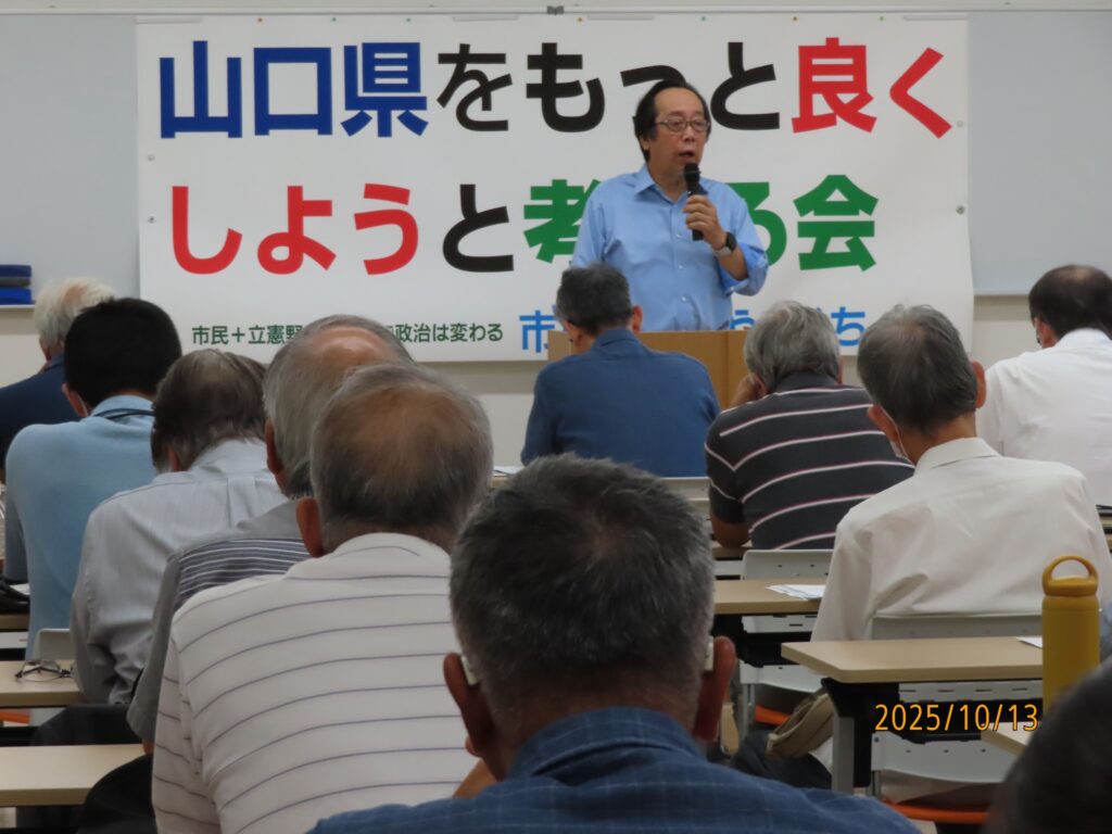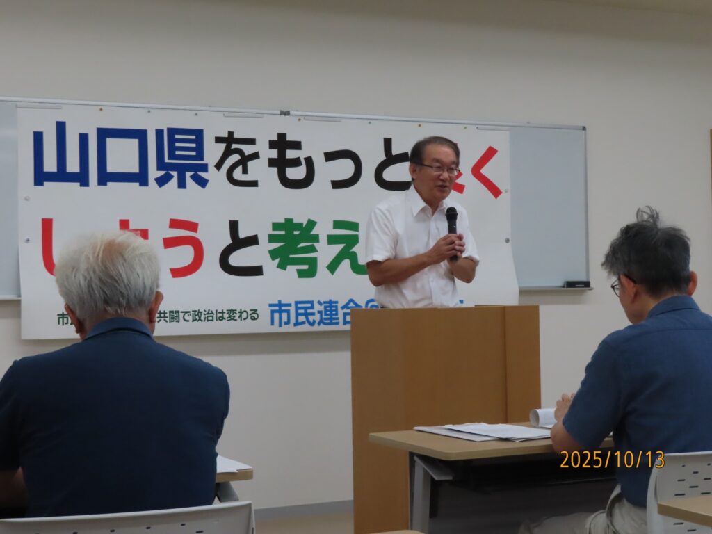 市民連合@やまぐちは、来年の2月8日投票(1月22日告示)で行われる山口県知事選挙のための意見交換会を行いました。